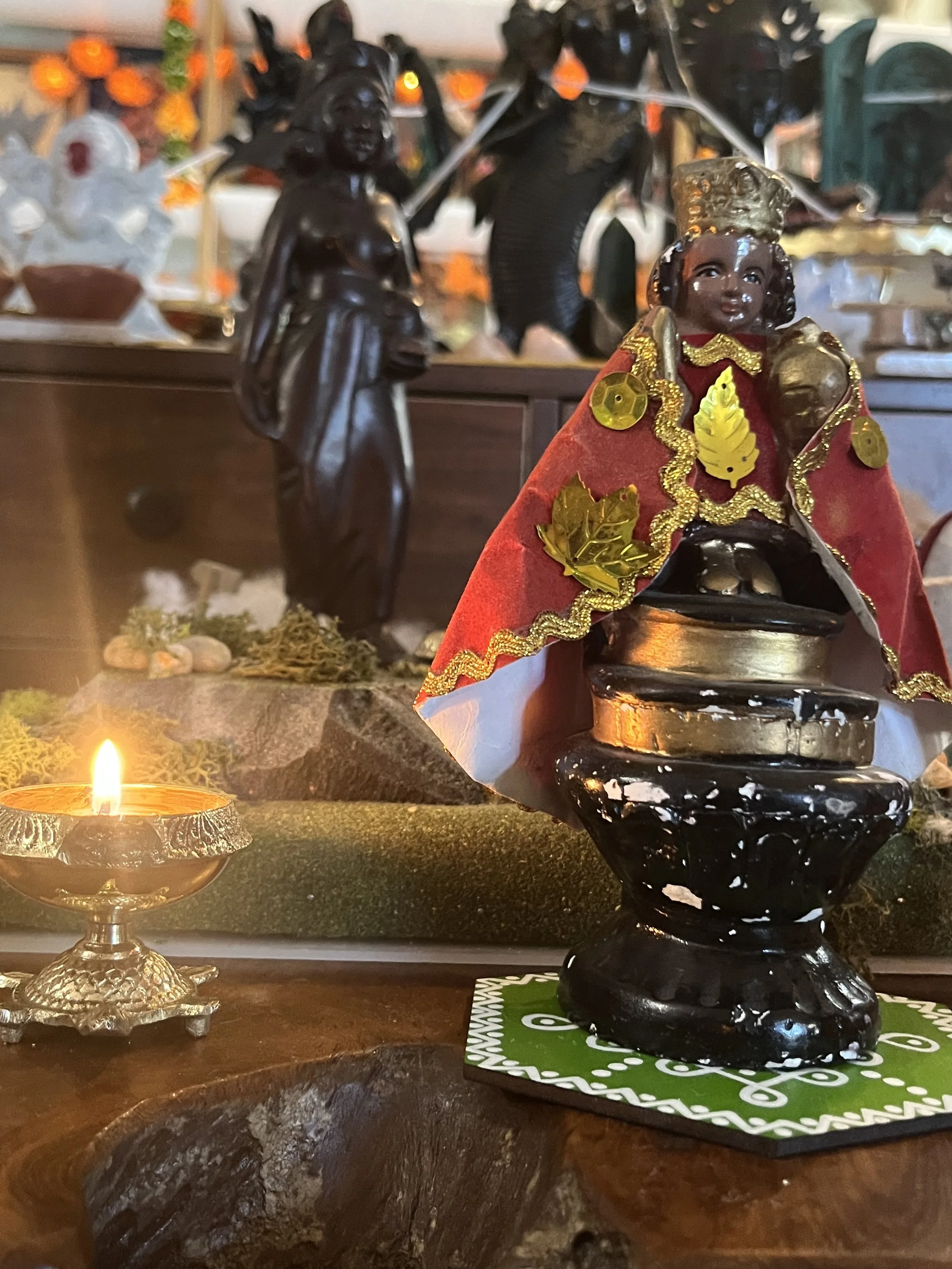 Our Cavern House shrine cares for these two murtis that are identical to the murtis back at our family’s homes in Bataan and Samar.