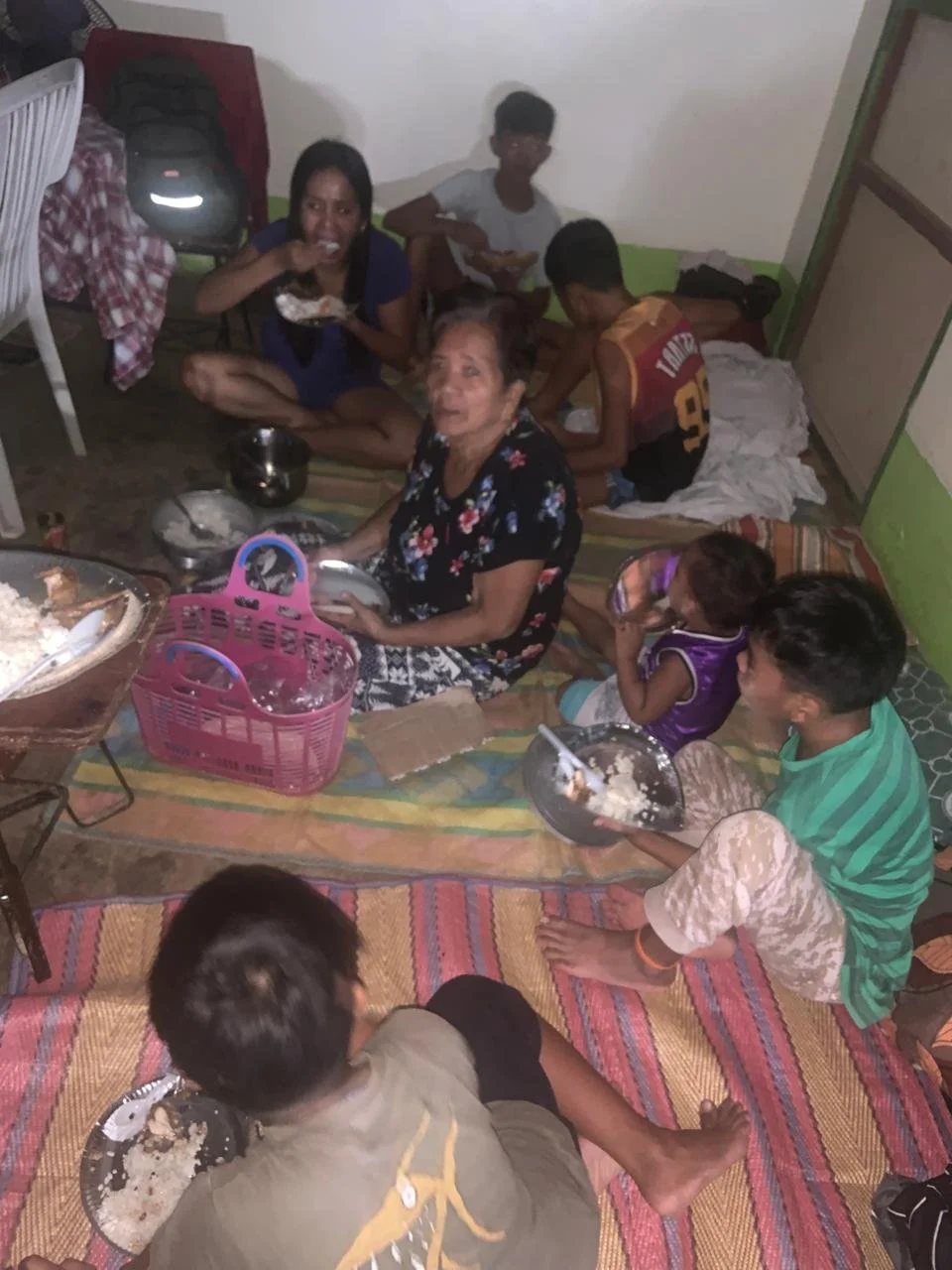 My Nanay and my other family members eating a simple adobo meal at the shelter. My niece cooked for everyone just before they made their way to the shelter at night.