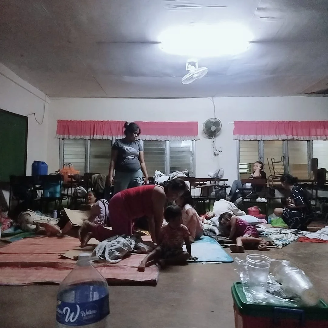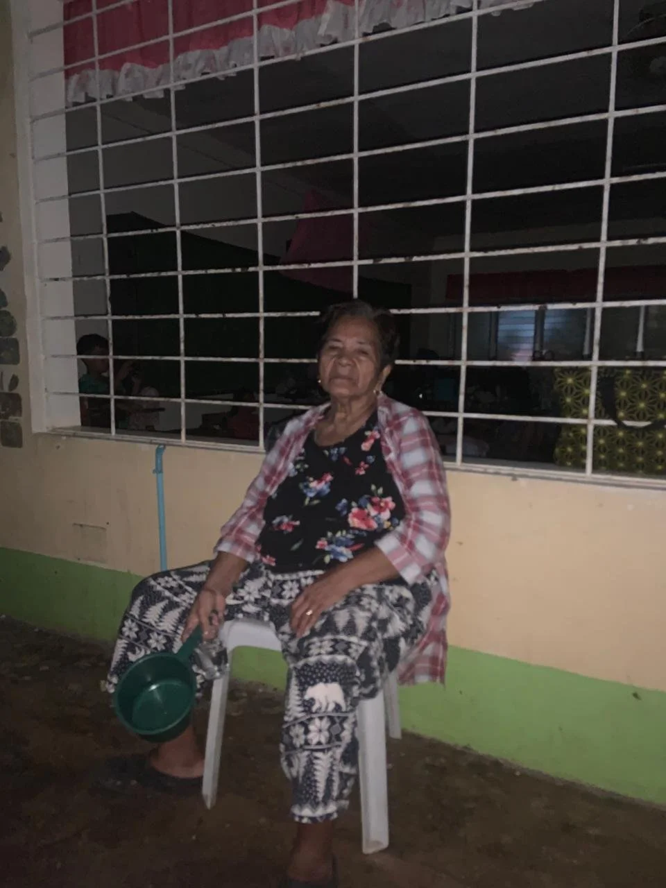 My Nanay, resting on a chair inside of the shelter. She has weathered thousands of storms, including giving birth to me during Typhoon Gading.