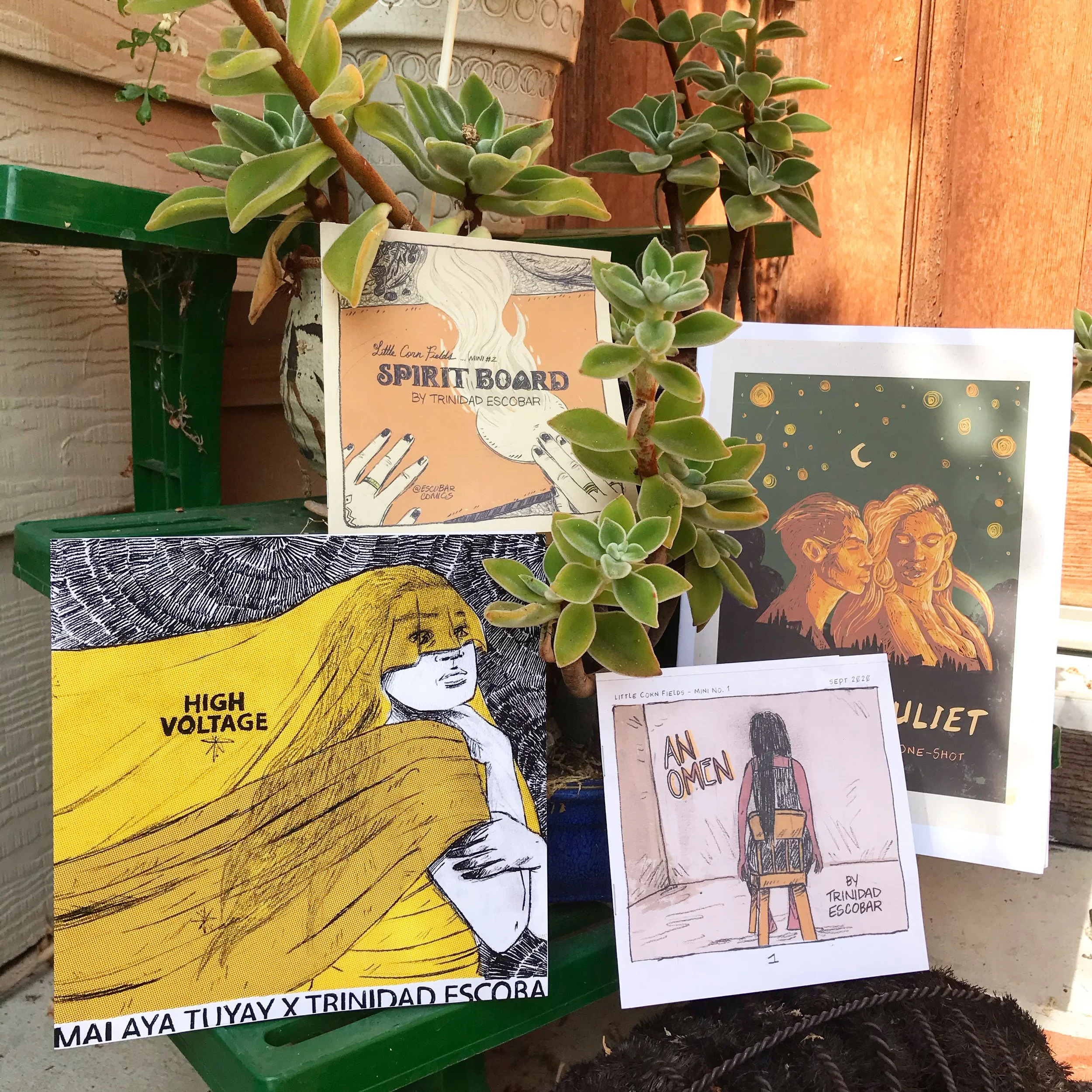 Trinidad’s illustrations and mini comics appear in anthologies and art collections like Theater of Terror published by Northwest Press. She also publishes explicit prose and illustrated erotica under pen names.